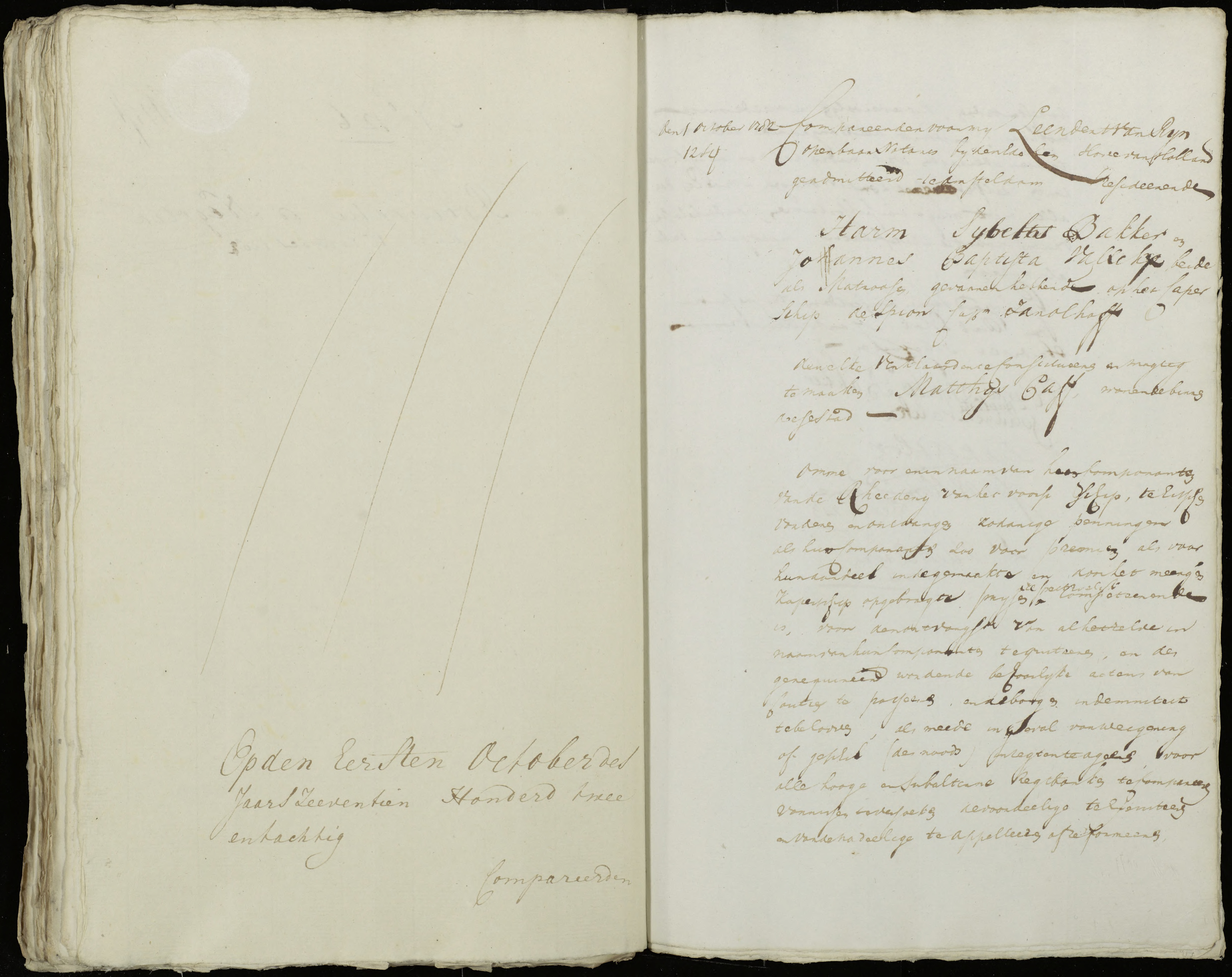 Op den eersten October des jaars zeventienhonderd twee en tachtig compareerden.