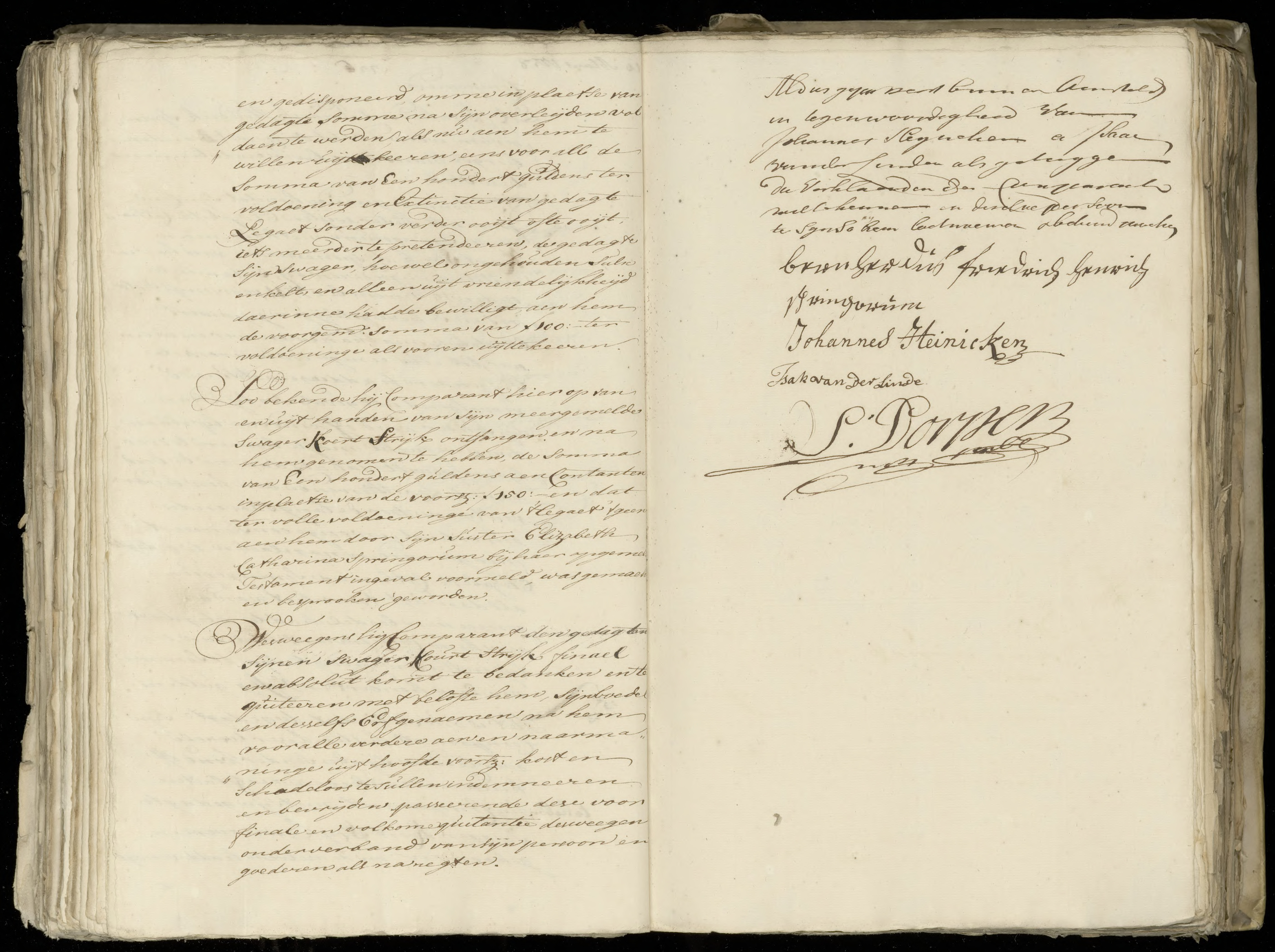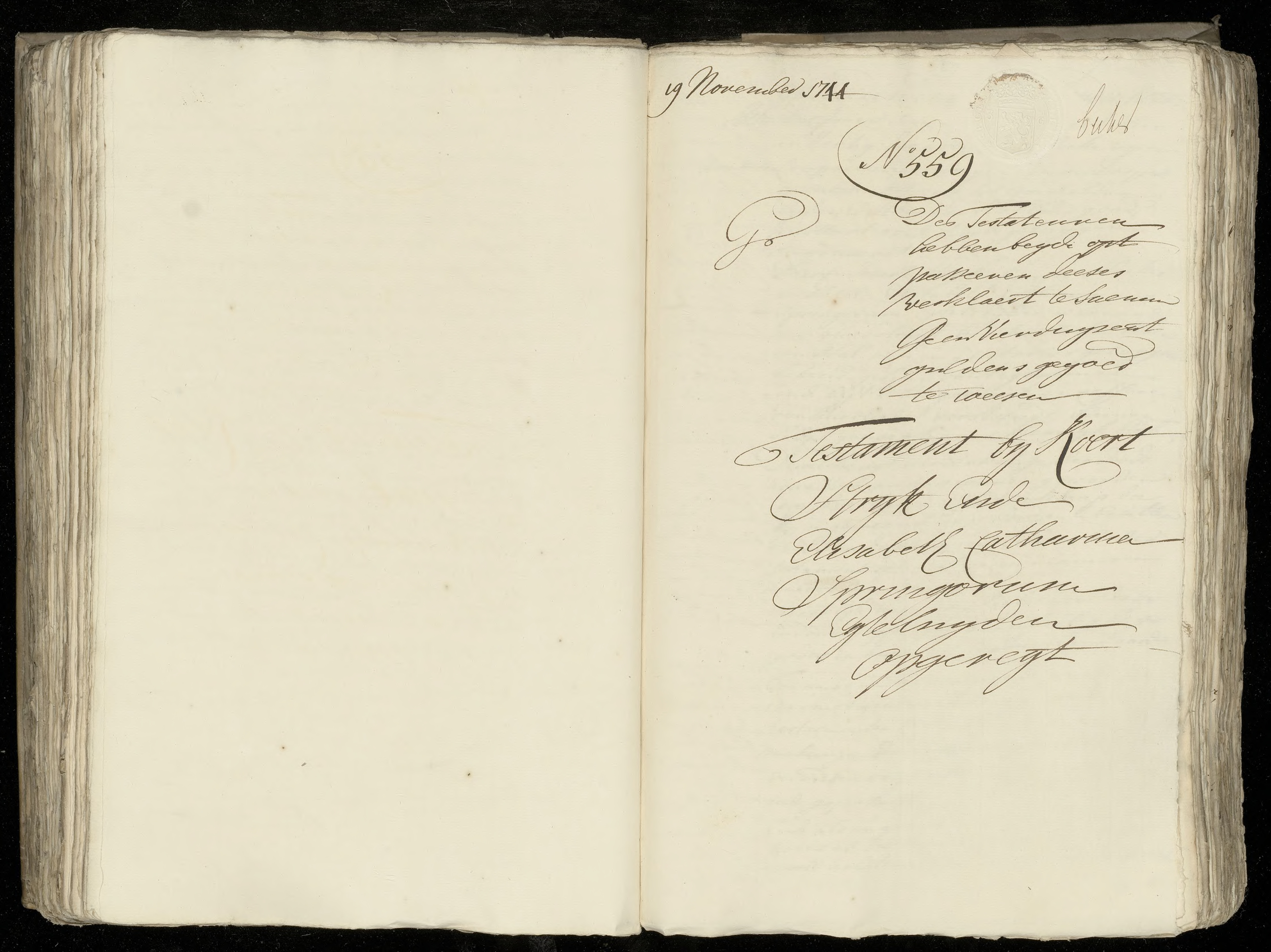 On 19 November 1744, a mutual testament was recorded for Coert Strijk and Elisabeth Catharina Springorum before the Amsterdam notary Salomon Dorper. The testament includes provisions and legacies for siblings and other family members, including a bequest to Elisabeth Catharina’s brother, Bernardus Fredrik Hendrik Springorum, then residing in Unna, Westphalia.