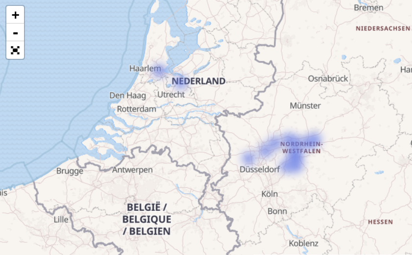 The surname Springorum is rare, very rare. Those who carry it most likely trace back to a common ancestor, making them distant relatives. This map helps test this idea by showing where the name is most concentrated. If there's only one hotspot, it likely points to a single family line. In this case, though, two clear hotspots stand out: one in Nordrhein-Westfalen and another near Amsterdam/Utrecht. They’re not far apart, but the key question is this—are the Springorums in these two regions actually connected?
