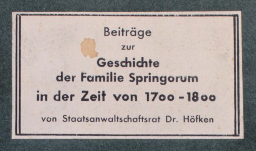 - Title: Beiträge zur Geschichte der Familie Springorum in der Zeit von 1700 - 1800